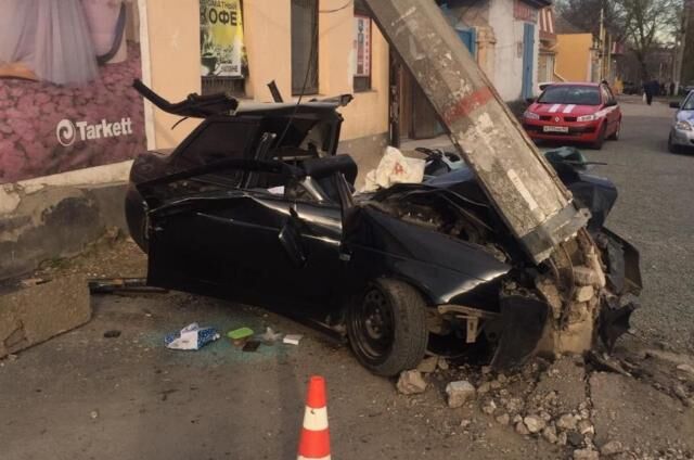 В Симферополе «Приора» снесла столб (ФОТО)