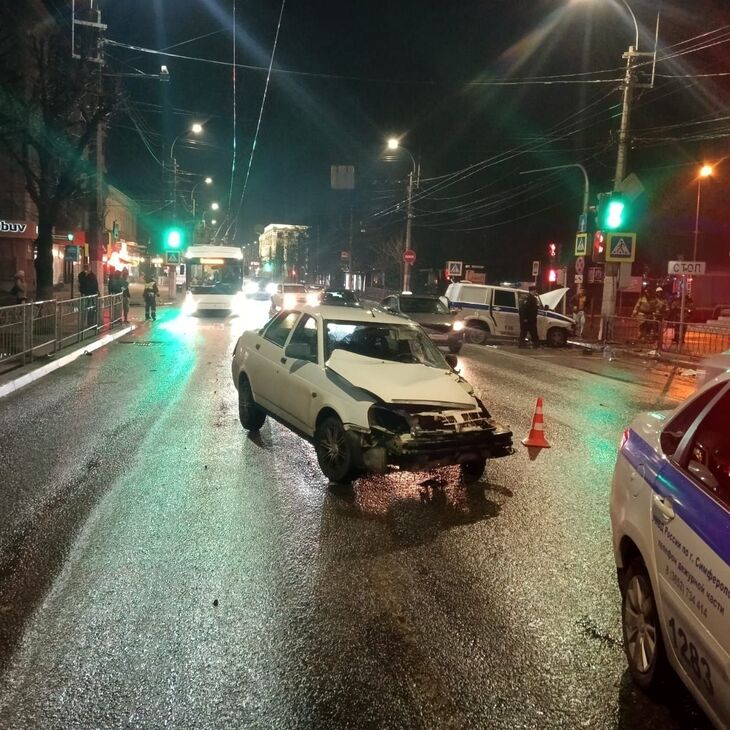 В Симферополе Приора влетела в полицейский УАЗ Патриот