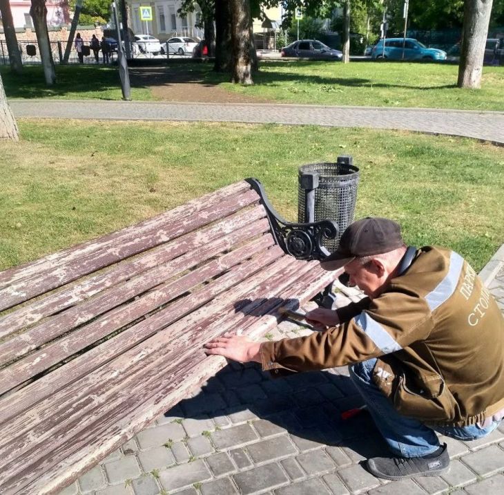 Ранее аналогичные работы были проведены в парке Гагарина и сквере Высоцкого. Уличная мебель требует регулярного ухода.