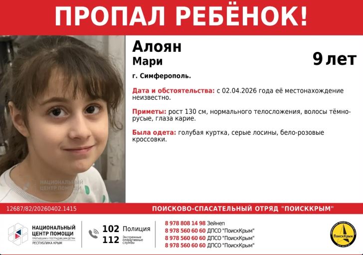 Приметы: рост 130 см, нормального телосложения, волосы тёмно-русые, глаза карие.