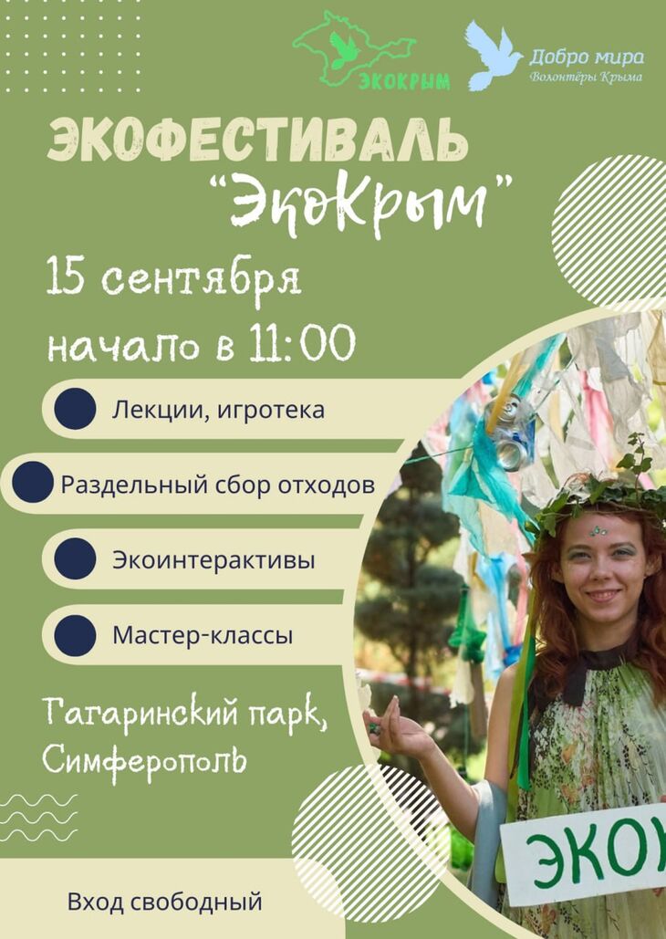 15 сентября в парке имени Гагарина пройдёт фестиваль «ЭкоКрым», организованный волонтёрами. Мероприятие будет проходить с 11:00 до 16:00 и обещает стать настоящим праздником экологии и развлечений. Об этом сообщили в ЭкоЦентре «ЭКОКРЫМ».
