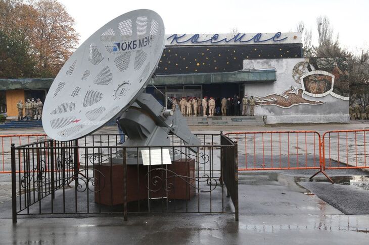 Также в сквере установлена космическая антенна.
