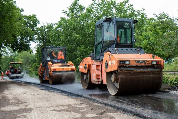 Сегодня подрядная организация проводит работы на улицах Линейная и Мелитопольская. После фрезерования дорожные службы укладывают новый асфальт.