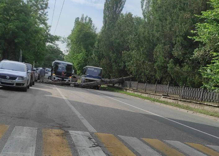 В Симферополе упавший тополь перегородил бульвар Ленина