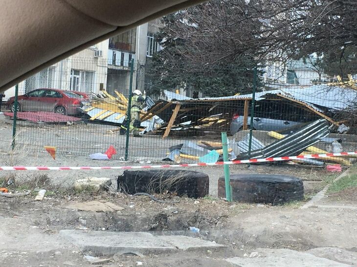 В Симферополе ветром сорвало крышу на стоящие рядом автомобили (ФОТО, ВИДЕО)