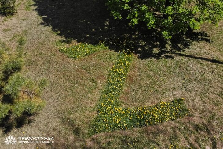 В Ботаническом саду им. Н. В. Багрова Крымского федерального университета поляну из одуванчиков выкосили в форме букв Z и V. Об этом сообщила младший научный сотрудник ботсада Елена Пидгайная.