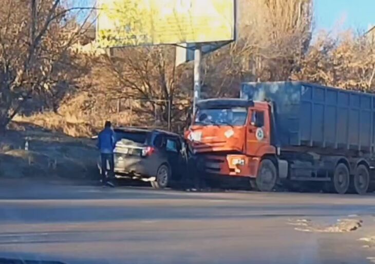 В Симферополе внедорожник на полном ходу протаранил грузовик