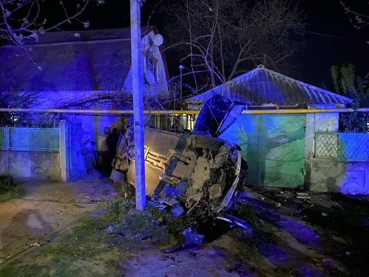 Двигаясь по Евпаторийскому шоссе со стороны с. Мирное в направлении ул. Ракетной водитель не выбрал безопасную скорость движения, не справился с управлением, допустил выезд за пределы проезжей части влево, влетел в домовладение, после чего машина перевернулась.