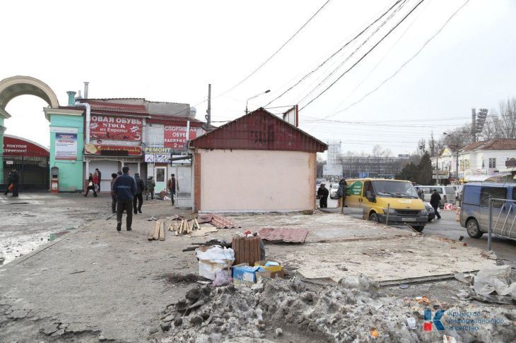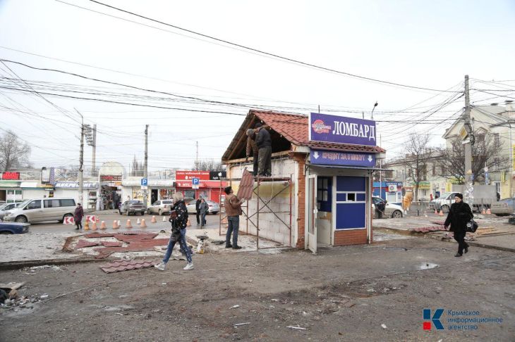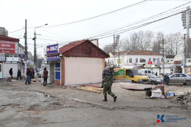 Перед входом в Центральный рынок Симферополя начали демонтировать часть незаконных построек. Как сообщает корреспондент КИА, ранее в незаконных постройках размещались вексельные конторы, ломбарды и микрокредитные организации.