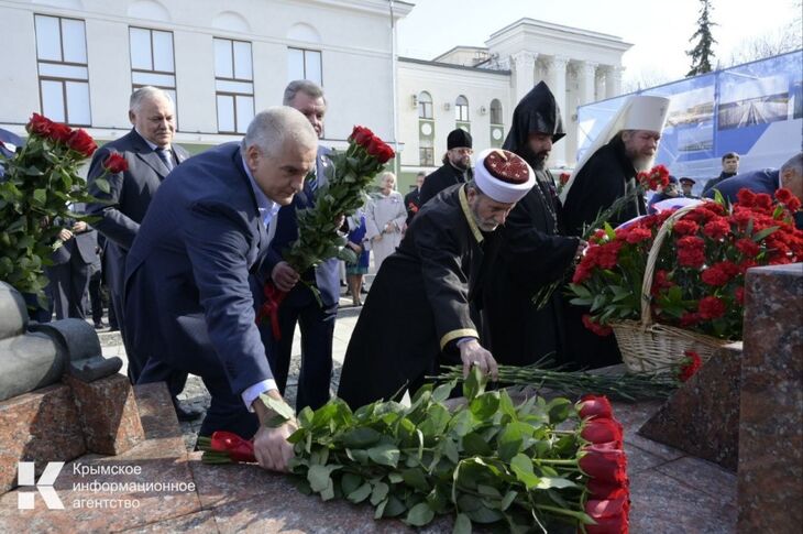 В городе Симферополе Сергей Аксёнов возложил цветы к памятнику «Народному ополчению всех времен», а также к памятнику «Вежливым людям». В ходе церемонии прозвучали государственные гимны Российской Федерации и Республики Крым в исполнении оркестра войсковой части 6917 Федеральной службы войск национальной гвардии Российской Федерации.