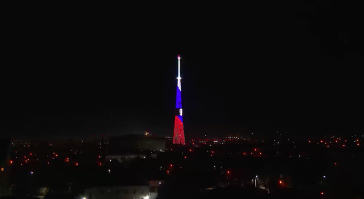В Симферополе прошла официальная церемония включения архитектурно-художественной подсветки телевизионной вышки.