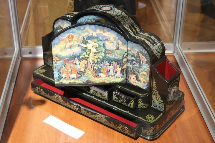 Экспонируются уникальные произведения по направлениям: художественная вышивка, художественное кружевоплетение, художественная резьба по кости, церковно-историческая живопись, лаковая миниатюрная живопись Мстёры, Холуя, Палеха, ювелирное искусство, художественная Богородская резьба по дереву, декоративная роспись.