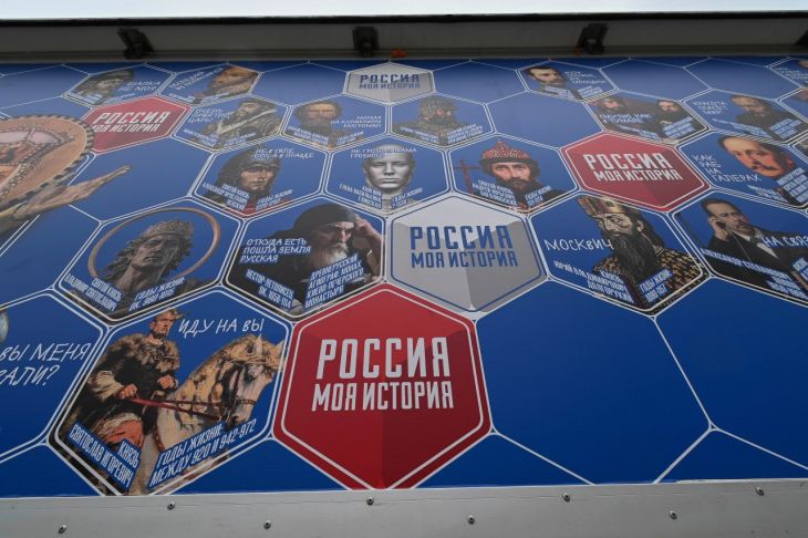 Сегодня по стране курсируют два мультимедийных автопоезда. В составе — 5 вагонов, где есть даже кинолекторий. Маршрут автопоезда пролегает через Херсонскую, Запорожскую и Донецкую Народную Республику.