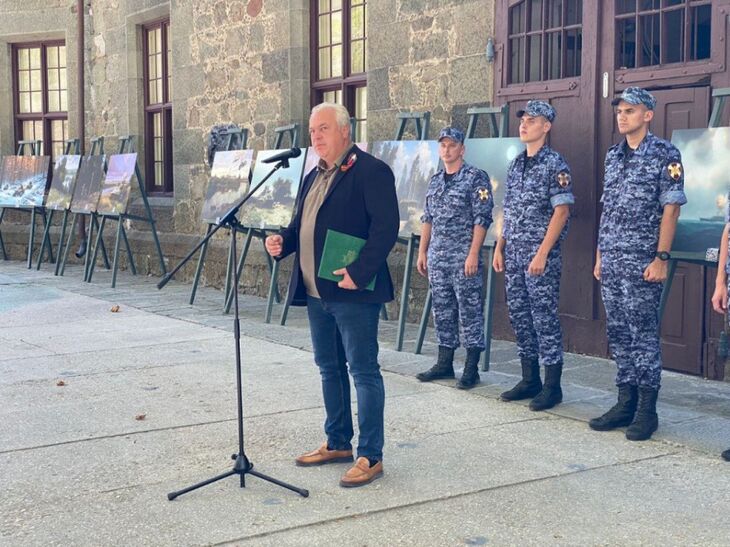 Церемония открытия выставки началась с приветственных слов директора Воронцовского дворца Александра Балинченко. Он отметил, что этот проект, реализуемый при сотрудничестве с организацией «Рыбарь», стал первым в истории Воронцовского дворца-музея, объединяющим современное искусство и историческую тематику. Александр Баличенко зачитал поздравительное письмо от министра культуры Республики Крым Татьяны Манежиной, которая отметила важность открытия выставки в современных реалиях. В письме она также поздравила всех офицеров России с их профессиональным праздником.