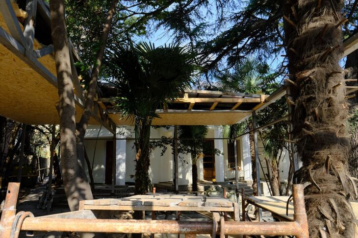 Строители срезали часть крыши площадки, освободив пальму и несколько крупных деревьев.