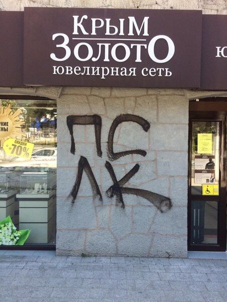 В Ялте, на улице Московская, двое неизвестных поздно вечером исписали баллончиком с краской ювелирный магазин.