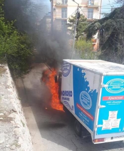 В Ялте сгорел грузовик с молочкой (ВИДЕО)
