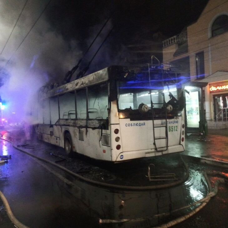 В 21-17 в пятницу, 26 мая, на улице Московской в Ялте загорелся троллейбус.