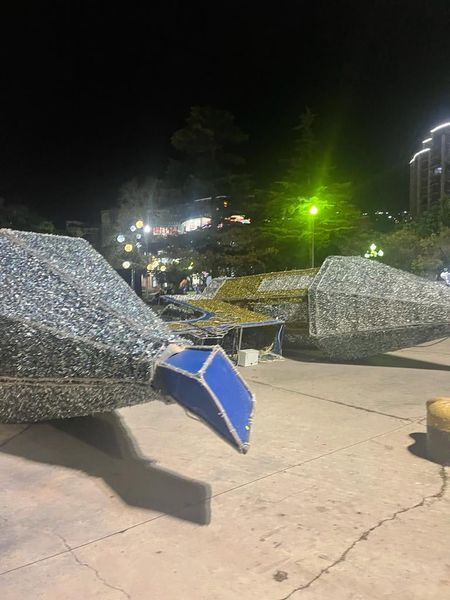 Штормовой ветер на набережной Ялты перевернул недавно установленную новогоднюю фотозону.