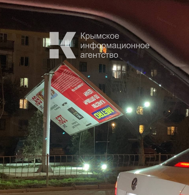 Кроме того, сильный ветер опрокинул рекламный щит на улице Гагарина в Симферополе.