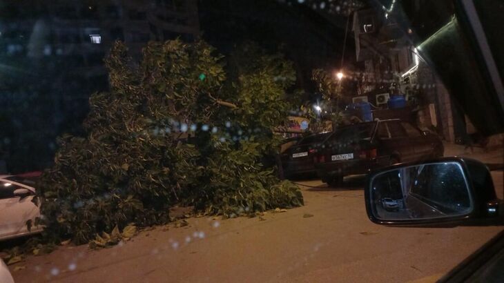 В Ялте упавшее дерево раздавило сразу несколько машин