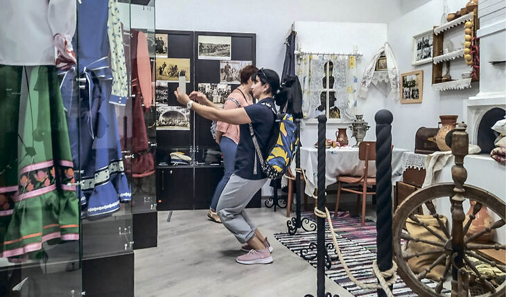 – Среди действующих атрибутов казаков у нас представлены форма, одежда, нынешние награды, которые вручают казакам, нагайки, – продолжает Роман Юхненко. – Некоторые головные уборы – репродукции. Отдельного внимания заслуживают две реконструкционные зоны: «Казачья хата» и «Конюшня». Там очень много старинных вещей, которым более 80 лет: прялки, горшки, прочая домашняя утварь, седло, подковы. Среди посетителей были люди в возрасте около 90 лет, так они плакали, говорили, что встретились с атмосферой своего детства.
