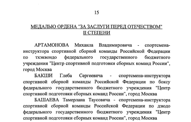 Награды присуждены за большой вклад в развитие отечественного спорта, высокие спортивные достижения, волю к победе, стойкость и целеустремлённость, проявленные на Играх XXXII Олимпиады в Токио.