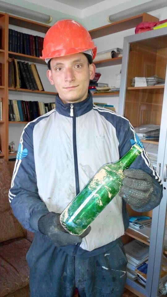 Бутылку нашёл рабочий по имени Игорь, он трудится в бригаде, которая реставрирует мечеть Шукурла-эфенди. Рабочие восстанавливают стены и кладут черепицу. Бутылка была найдена в стене с северной стороны.