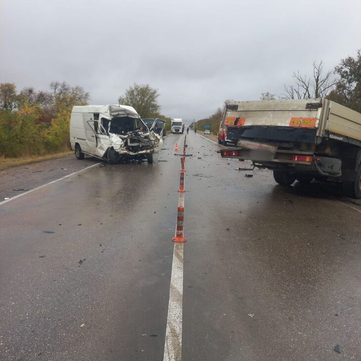 Сегодня в 11:10 на автодороге граница с Херсонской областью Симферополь-Алушта-Ялта вблизи села Новоандреевка столкнулись микроавтобус и грузовик.