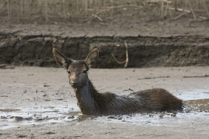 «Благодаря неравнодушным крымчанам, которые сообщили о том, что животное застряло в иле, сотрудники Минприроды Крыма оперативно прибыли на место и помогли оленю выбраться», — рассказали нам в ведомстве.