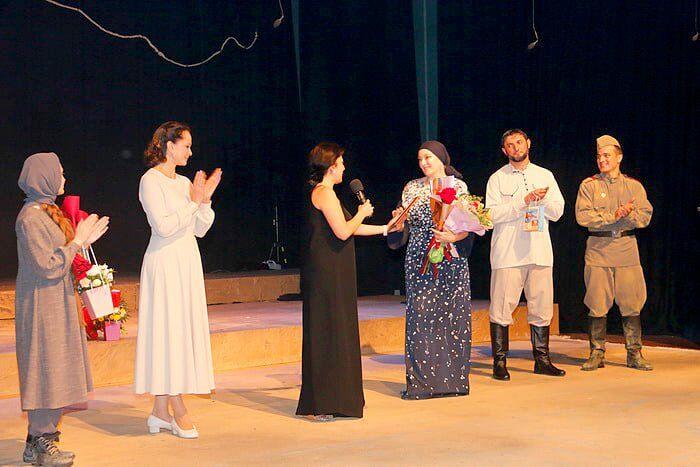 После спектакля «В горы за тобой» министр культуры Республики Крым Арина Новосельская вручила памятный диплом фестиваля художественному руководителю-директору театра народной артистке Чеченской Республики Хаве Ахмадовой.
