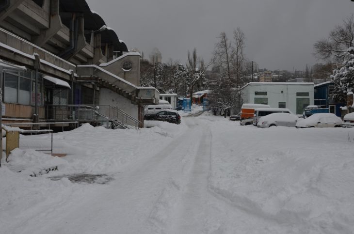 Необходимость задействовать тяжелую технику есть также и в «Горной здравнице», так как уровень снега там превышает 1 метр.