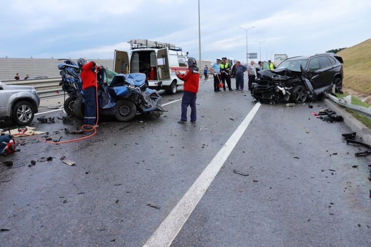 «Днём 26 июня молодой человек на автомобиле BMW X5 двигался по автотрассе А-291. В это время на участке дороги в Белогорском районе автомобиль Рено Сандеро и Ниссан оформляли мелкое ДТП. Водитель BMW совершил наезд на стоящий в левой полосе Рено, что повлекло сдавливание его кузова. После произошло столкновение Рено с движущимся в попутном направлении Камазом. В результате ДТП погибли водитель Рено, его супруга и их 15-летняя дочь», — рассказали в пресс-службе.