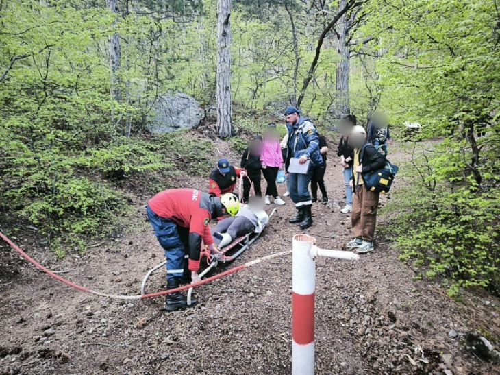 Второй инцидент произошел тоже недалеко от Ялты. В районе тропы Палласа спускаясь по горной тропе, женщина оступилась и повредила ногу.