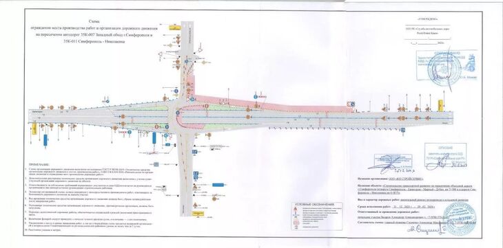 «Изменения схемы организации дорожного движения вводятся на время выполнения работ по объекту «Строительство транспортной развязки на пересечении объездной дороги г. Симферополя (а/дорога Симферополь-Евпатория-Мирное-Дубки, км 7+300 и а/дорога Симферополь-Николаевка, км 6+837) (корректировка)». Завершение строительно-монтажных работ запланировано в первом квартале 2024 года», — добавили в Службе автодорог.