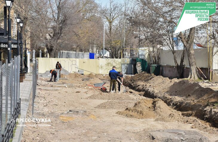 На Фестивальной площади в Евпатории продолжаются работы по благоустройству, сообщили в пресс-службе городской администрации.