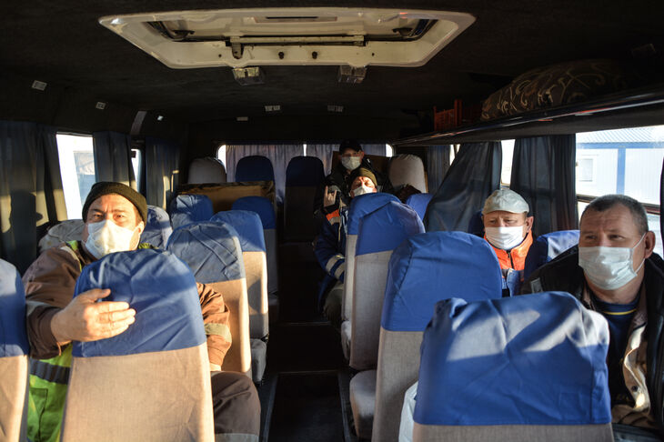 На территории производственно-технических комплексов, офиса и жилых городков и общежитий везде установлены санитайзеры.