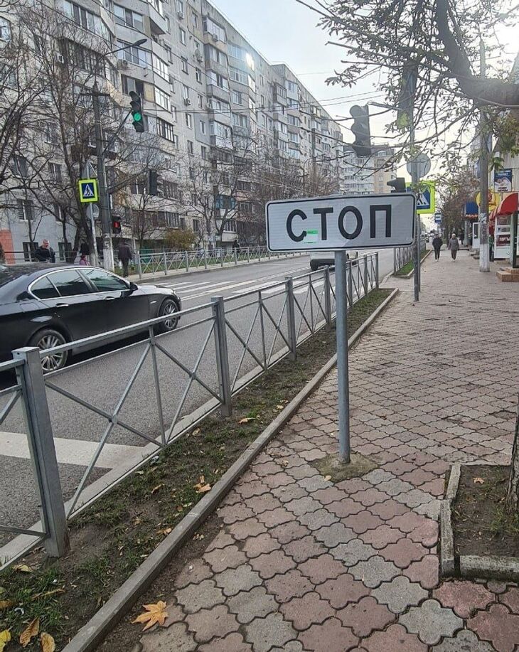 «По всему городу дорожные знаки стоят как будто их расставлял пьяный узбек. Я, конечно, всё понимаю, но есть же правила установки. Высота установки дорожных знаков от земли по ГОСТу зависит от места расположения: от 1,5 до 3,0 м при установке сбоку от проезжей части вне населенных пунктов. На фото результат встречи со знаком на Петропавловской, который повесили на тротуаре четко на уровне головы», — написал автор публикации.