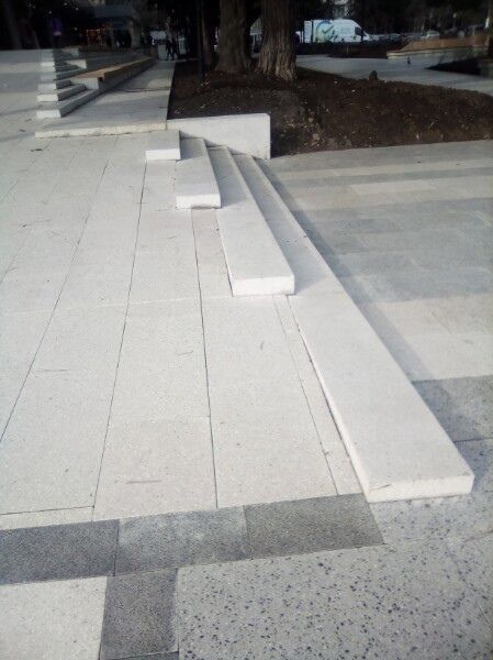 В Ялте на реконструируемой площади Советской новые ступеньки вызвали вопросы у местных жителей. Фото опубликовано в соцсетях.
