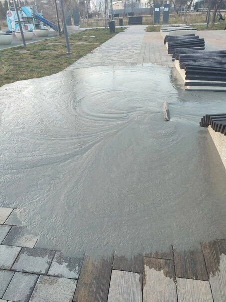 В новом парке в Инкермане местных жителей неприятно удивило появление огромной лужи из цемента. Фото опубликовано в соцсетях.