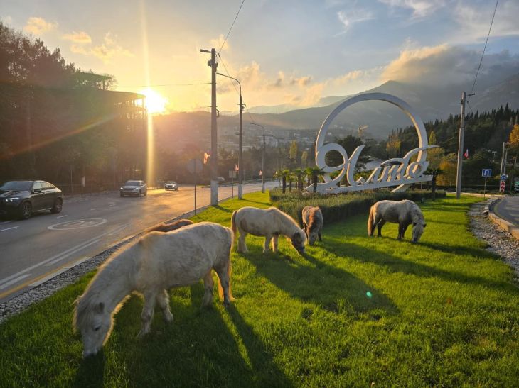 Пони в Ялте едва не устроили транспортный коллапс. Несколько домашних животных решили устроить обед прямо на въезде в город. Об этом сооб...