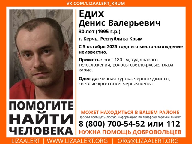 С 5 октября о его местонахождении ничего не известно, сообщили в поисковом отряде «ЛизаАлерт» Крым. Приметы: рост 180 см, худощаво...