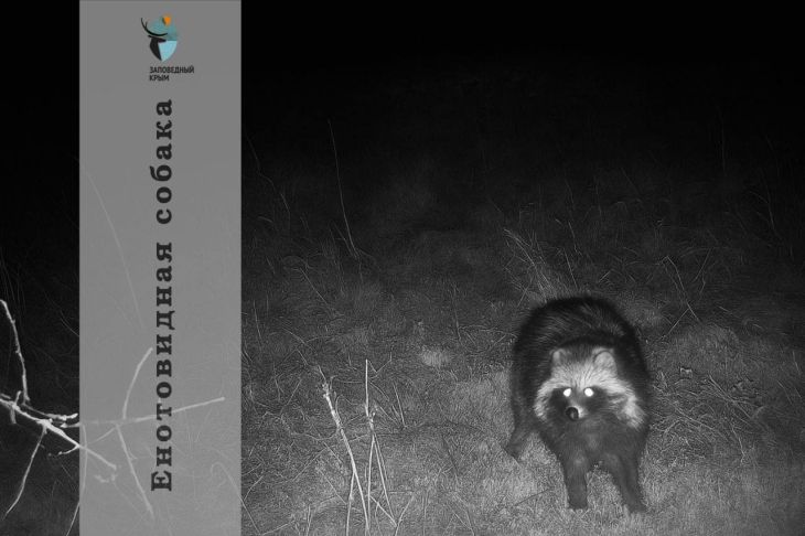 Енотовидная собака (коротконогий хищник среднего размера с пушистым хвостом) попалась в фотоловушку на территории Опукского заповедника. ...