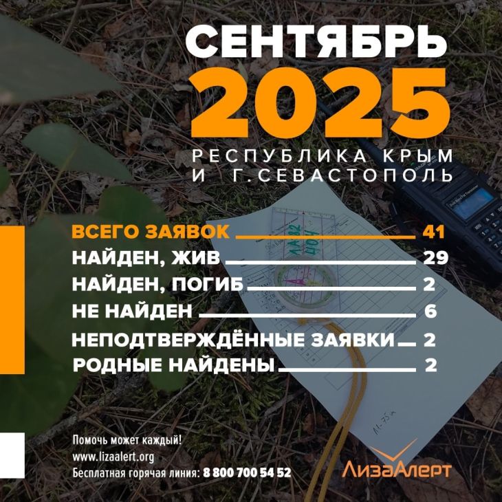 За сентябрь в Крыму нашли мертвыми двоих пропавших человек. Поиски еще шести крымчан продолжаются. Живыми нашли 29 человек. Об этом сообщ...