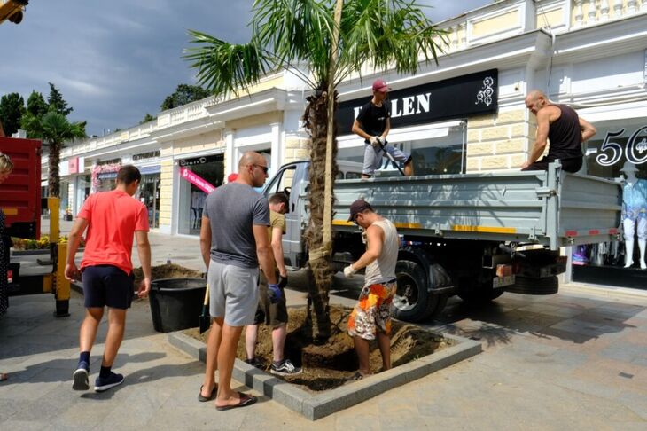 Взамен погибших от вредителей на набережной Ялты ко дню города высадили новые пальмы. Об этом в своём Telegram-канале сообщила глава городской администрации Янина Павленко.