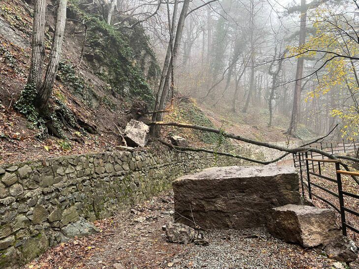 Из-за обильных осадков, на входной группе водопада Учан-Су произошёл обвал горной породы. Об этом сообщили в ФГБУ «Заповедный Крым».