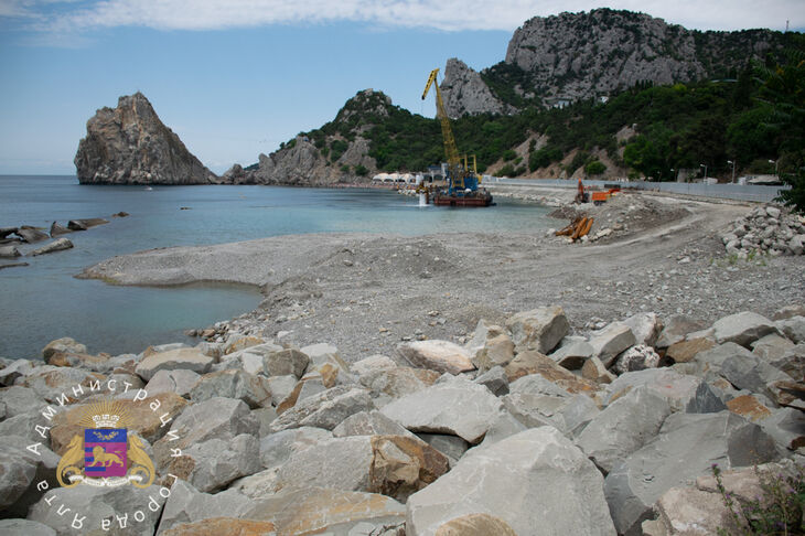 Работы по реконструкции берегоукрепительных сооружений санатория «Пионер», которые примыкают к симеизскому пляжу, начались в 2018-м году и должны завершиться к концу 2020-го. Протяжённость объекта – 399 метров, общая сумма контракта – более 220 миллионов рублей, за которые должны быть возведены различные волноломы, лестничные сходы, защитные бирмы, волноотбойные стены, осуществлено бетонное покрытие набережной и отсыпан щебнем галечный пляж. Строительная готовность объекта составляет 75%.