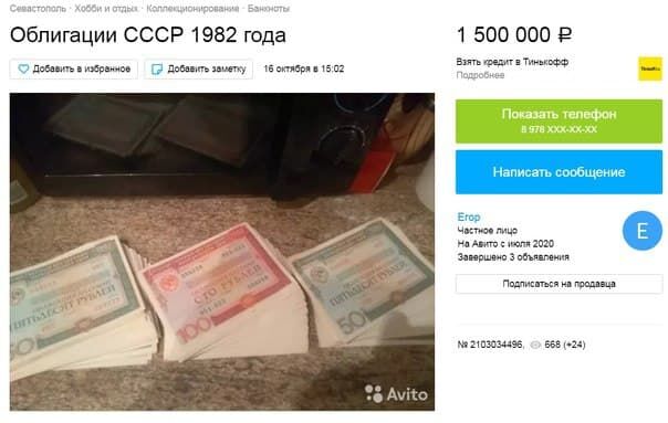 Житель Севастополя продаёт ценные бумаги 1982 года за полтора миллиона рублей. Продавец перевёл сумму облигаций 1982 года на нынешние деньг...