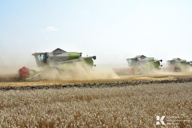 На сегодня в республике обмолочено 59% зерновых и зернобобовых культур на площади 353 тысячи гектаров. Об этом вице-премьер – министр се...