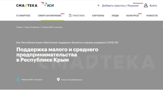 Меры поддержки предприятий Крыма представлены на платформе «Смартека», созданной Агентством стратегических инициатив. Об этом сообщили в пре...
